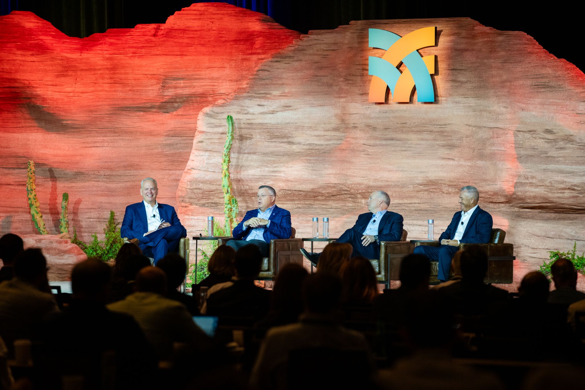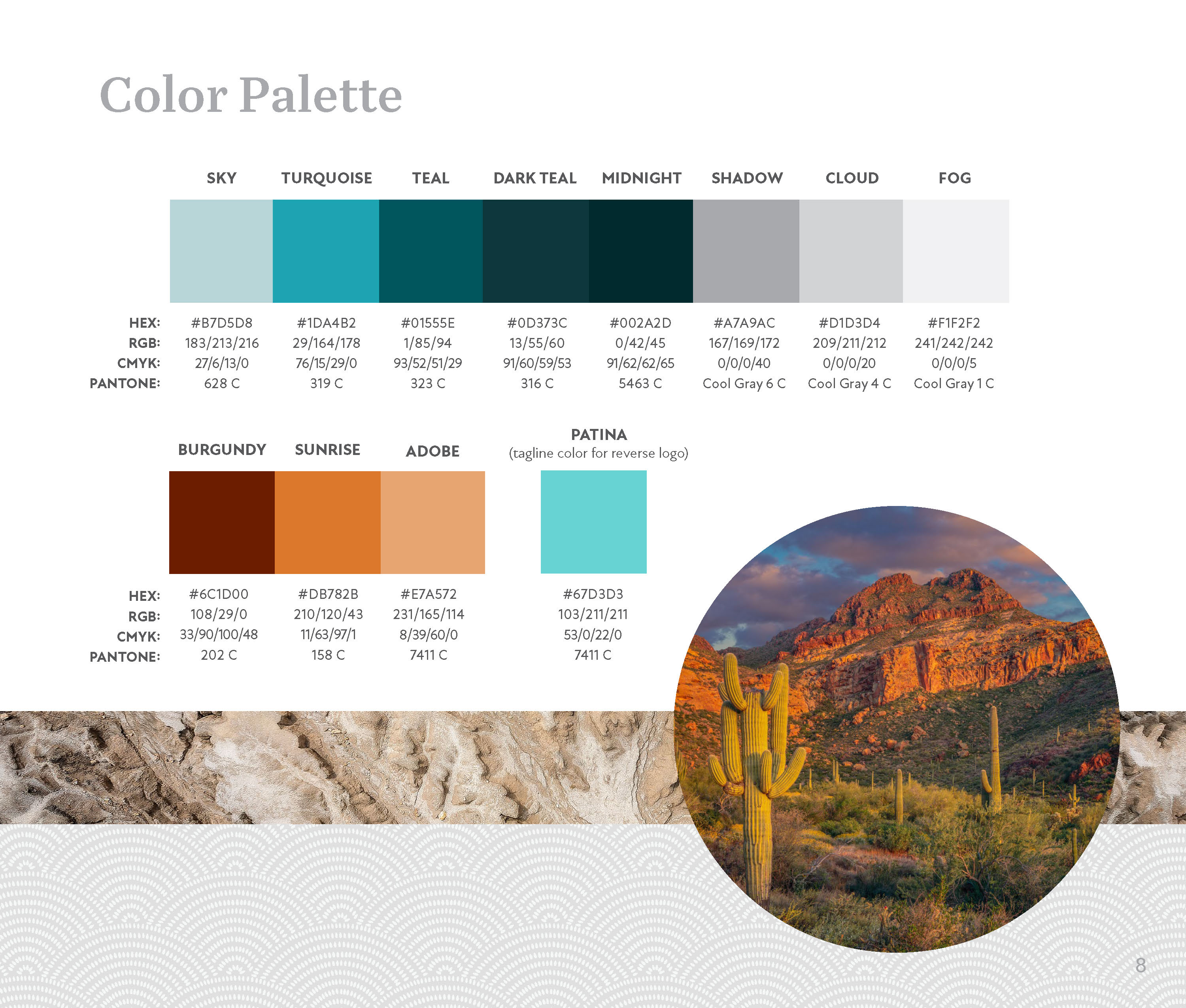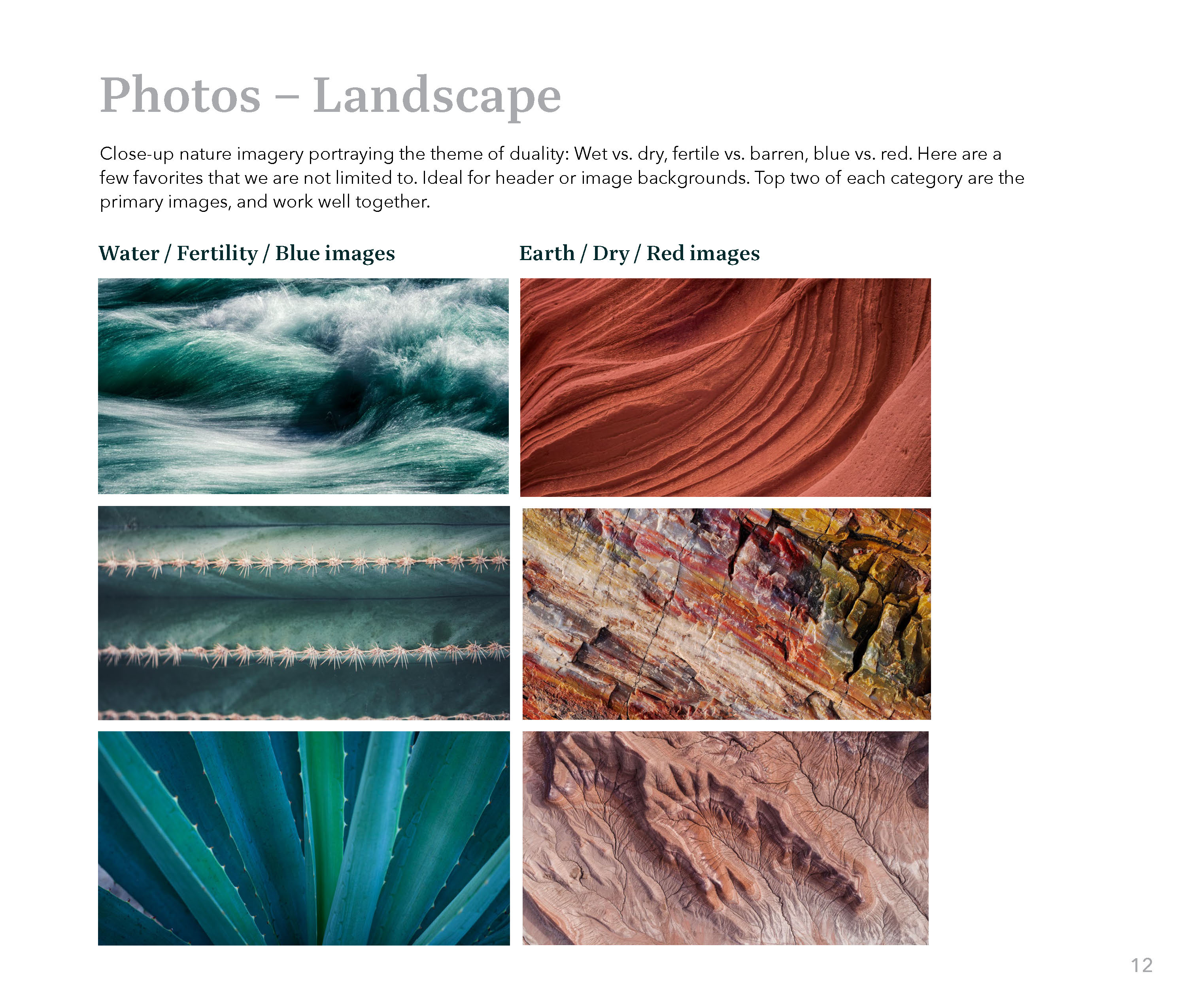 Teaming up with a fellow Graphic Designer, we initially produced three different mood boards, all inspired by the location of the conference—Arizona. The events team chose the last option, which I was inspired to create from Native lore about the Salt and Gila Rivers and the concept of the balance and bridging of two opposites to find harmony—water vs. earth and wet vs. dry.