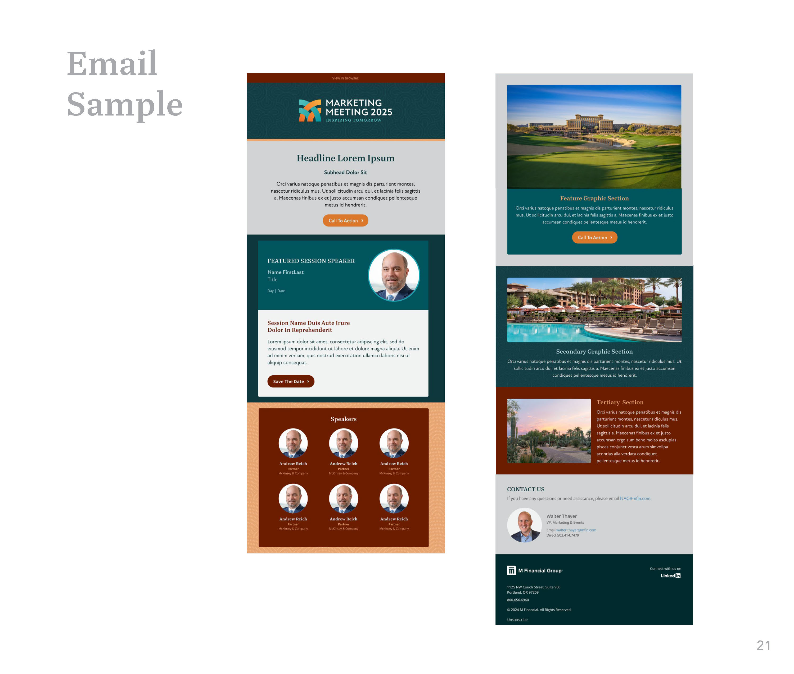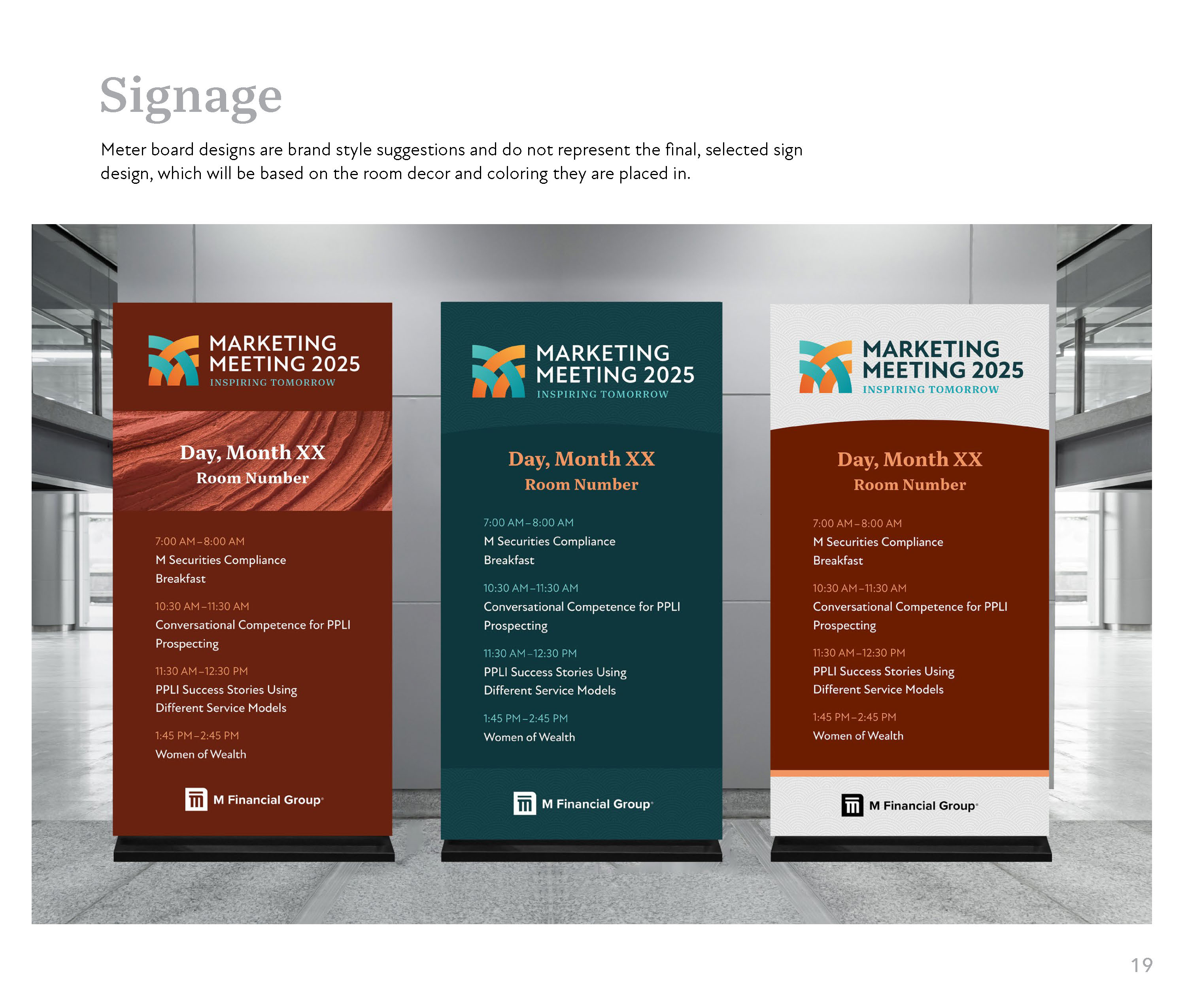 Create a unique brand identity for M Financial’s prestigious annual event, Marketing Meeting 2025, tailored for their Member Firms, Principals, and Insurance Carriers.